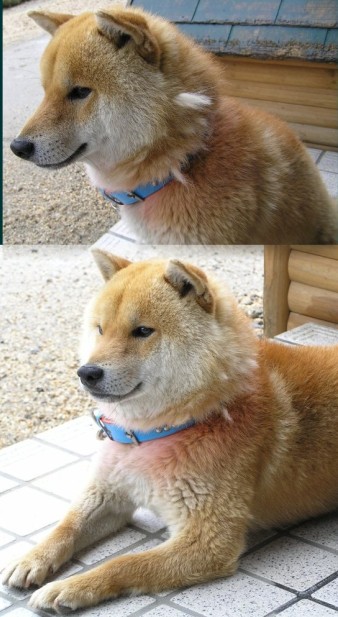 最初見たときは、怪我でもしたのか?とびっくりして首周りを確認しましたが、傷は無く首輪にオレンジ色縁取りがありこの色が抜けたんですね~。