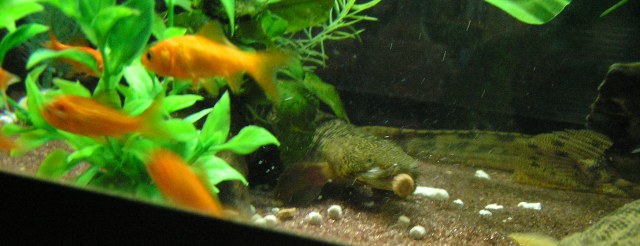 マイペースに人口飼料を食べる個体もいますが、こいつは多分腹の膨らみ方を見ると小赤も食べてますね。