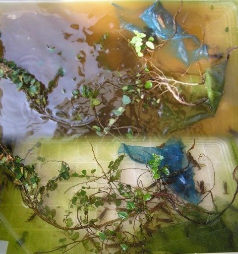 水を新しく交換して、貴重なザリガニですから共食いを極力減らす為にネットも2枚程追加しました。