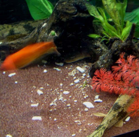 今日は帰宅が遅くなり、帰宅時には水槽のライトは消灯後でしたが、再点灯して餌をやりました♪