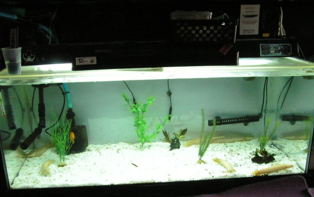 底が白砂利なんであまり水草ボウボウにしても逆に違和感がでそうでこの程度がBESTマッチかも?