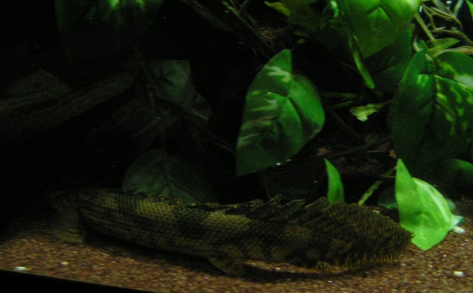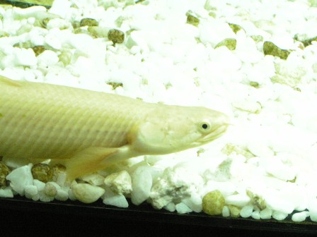 アジアアロワナも真っ暗な夜間は目が垂れてます。