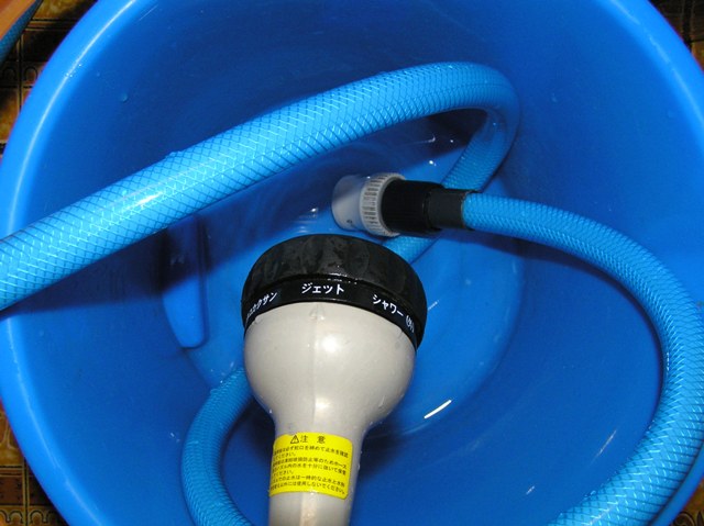 水換えの排水は長いホースで風呂場の排水口へ流し、注水はこれまた風呂場の水道から温水をホースリールでジャバジャバと注水してます♪