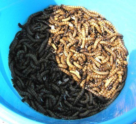 今回は試しに、ワームの床材とコオロギのケースにスピルリナ原末を混ぜてみました。