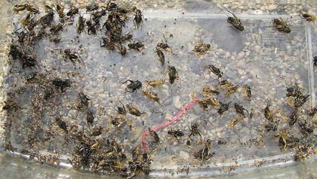 コオロギですからワームのように死骸無しとは行きませんが、今回は丈夫な黒コオロギ混合だった為に、死骸より脱皮後の抜け殻の方が多かったです。
