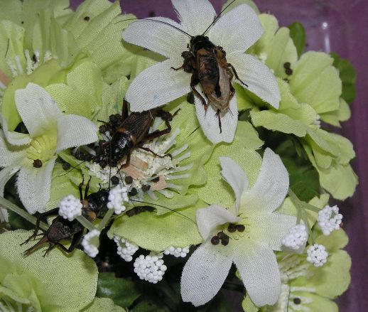 隠れ家の造花を取り出して生存コオロギと抜け殻&死骸を確認。