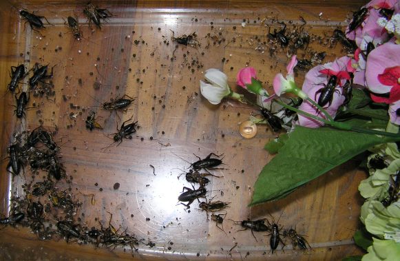 解り難いですが死骸は脚の茶色いコオロギが多く、確かにクロコオロギは死に難いみたいですね。