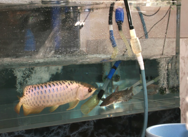 今日の水換え前の給餌では守護神龍はキャットバカ喰いでした♪