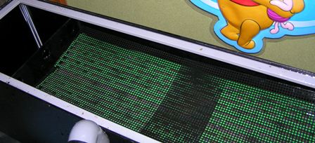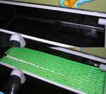 このフィルターは画像上の様にドライボール層とマットを仕切るように設計されており通常はマットが水に浸かる事は無いのですが、マットが目詰まりした事によりどっぷり浸かっており、もう少し目詰まりが進行すれば水が溢れてしまう所でした。