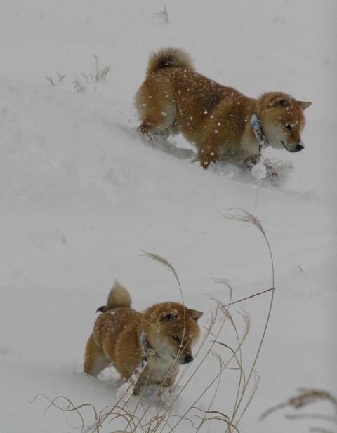 犬は元気ですね~、新雪の所を楽しそうに飛び回ってます♪