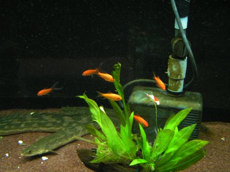 水槽前面の石が緑苔がかなり付いてきたので水槽奥の石と場所を入れ替え、底面フィルターも中央に移動させました。