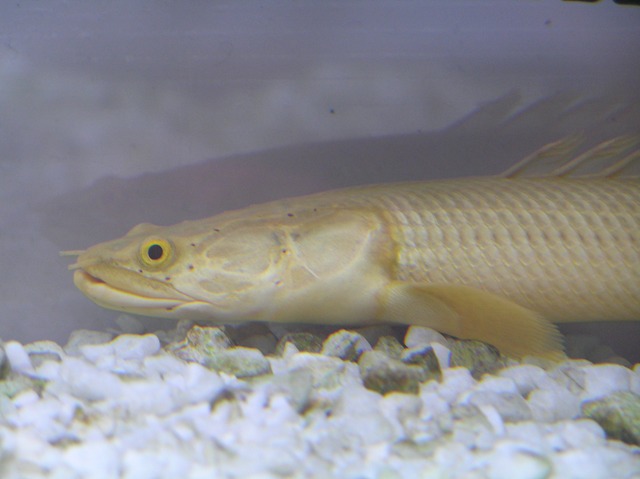 ポリプテルスの白変種の特徴として白目部分には模様は入りません。