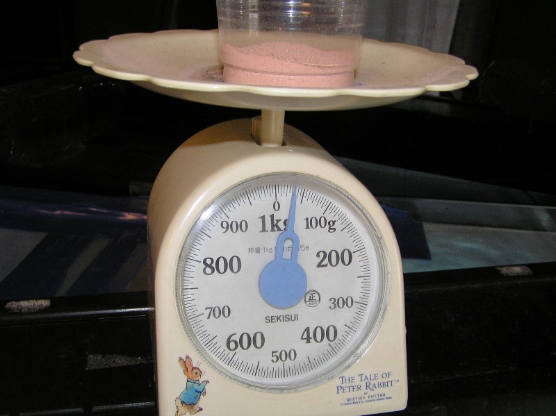 我が家は2400×900×600なんで水量約1300リットルなんですが、星の屑改約1000リットル分の30㌘を投入します♪