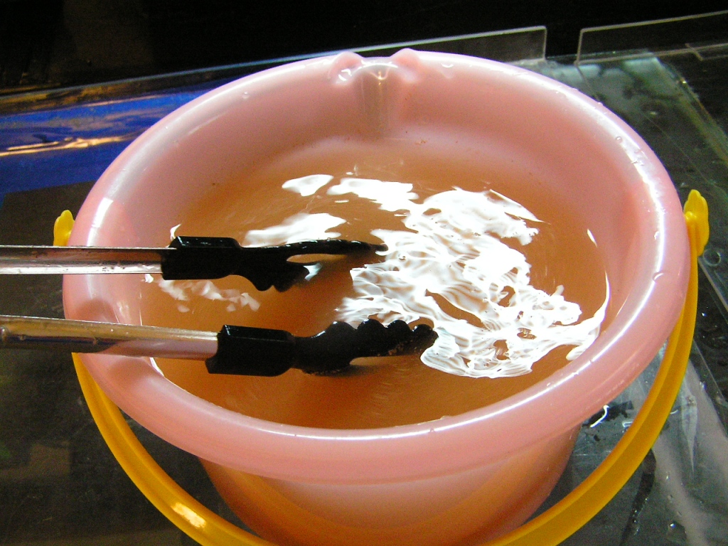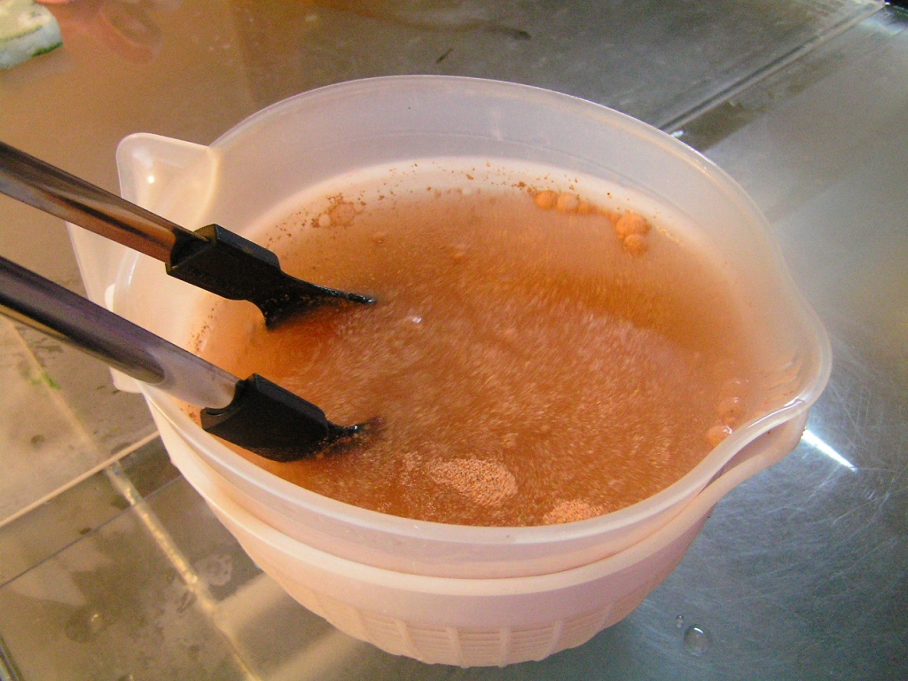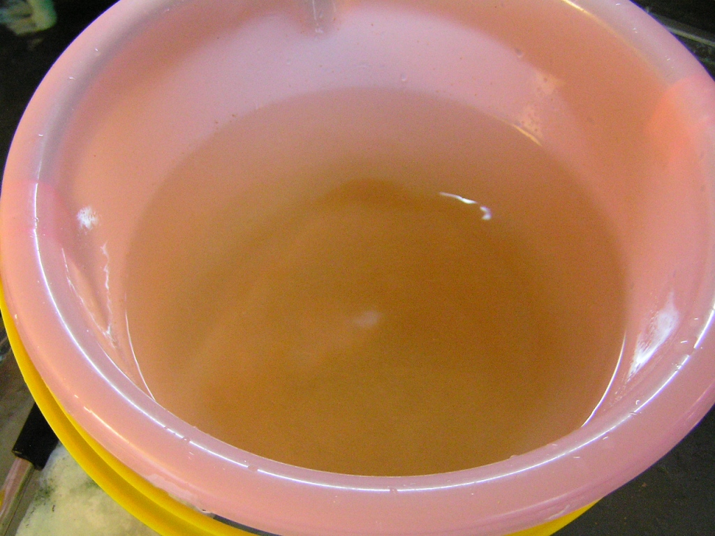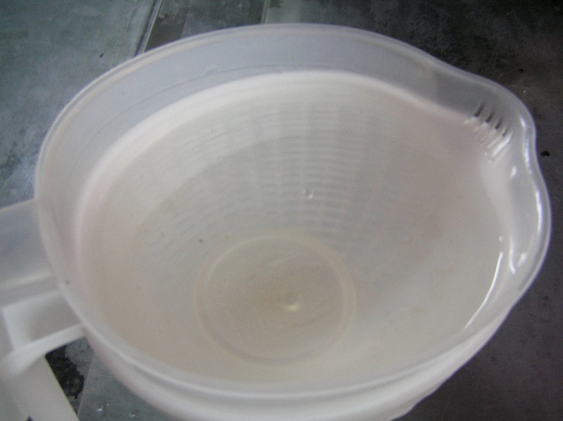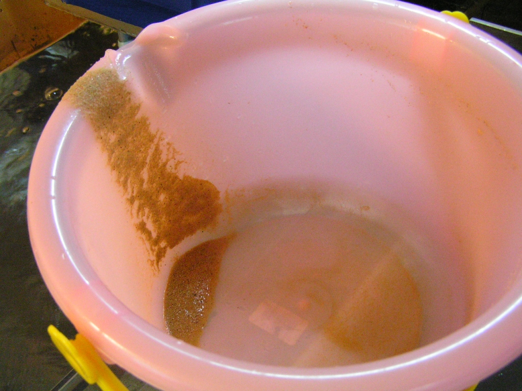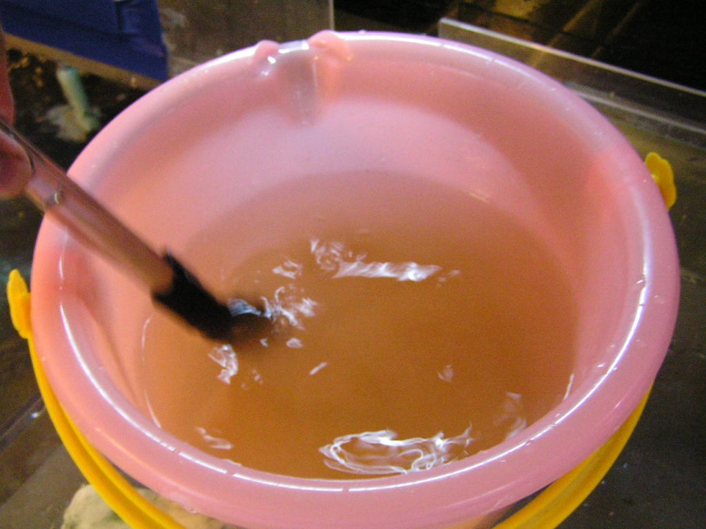 まだ残留粒子がバケツに残ったのでさらに飼育水を入れて混ぜ混ぜ♪