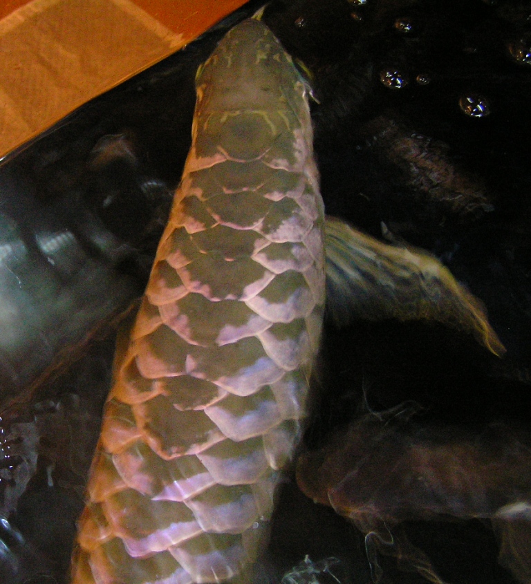 残るは鱗の埋まりのみですが、何十年と十数年は生きるアジアアロワナ過背金龍ですが、4列目は2年、5列目は5年も有ればほぼ埋まる様な感じはします♪