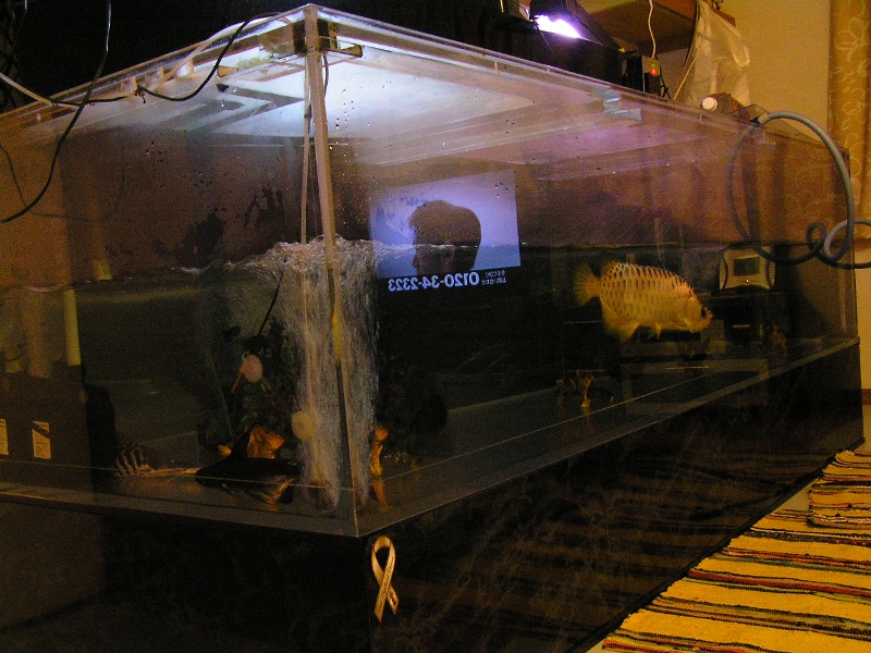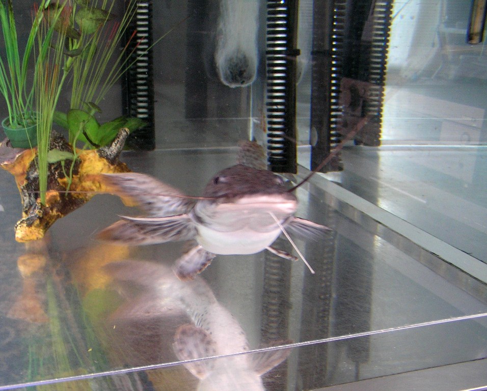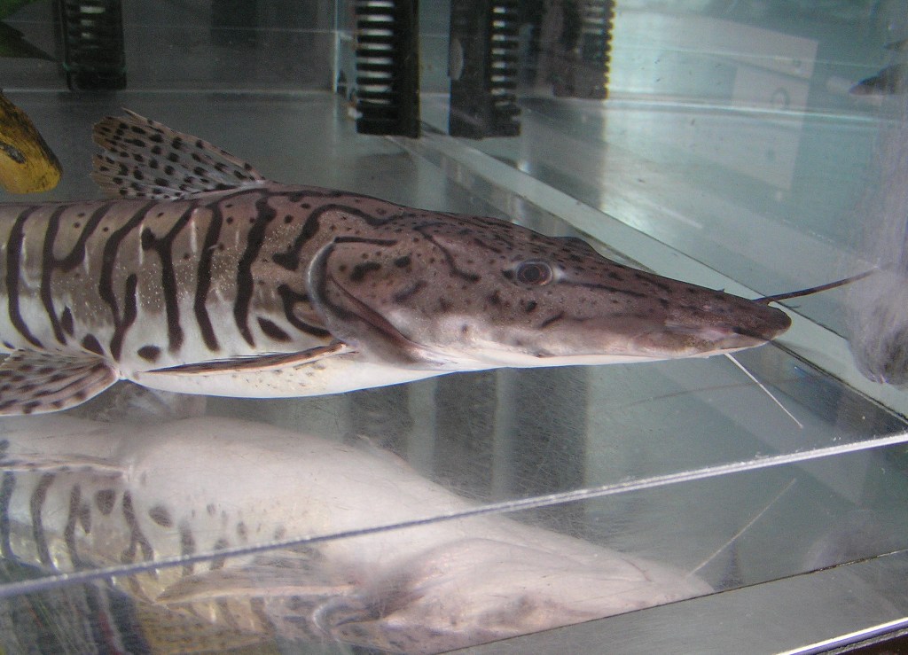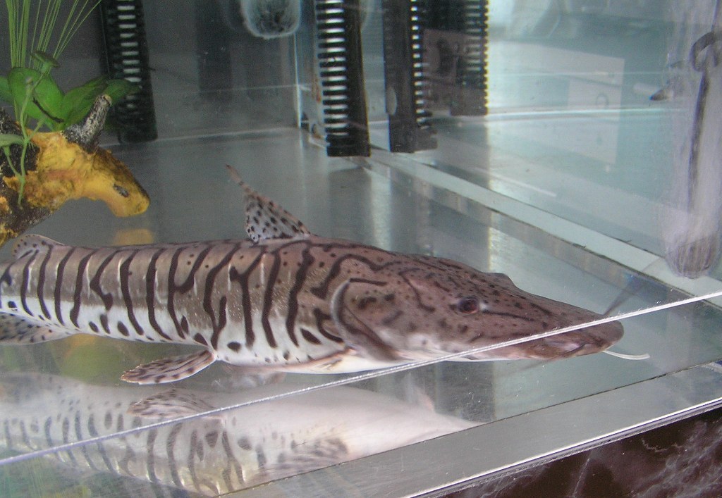 私が水槽前に行くと餌をねだるタイガーショベルノーズドナルド。