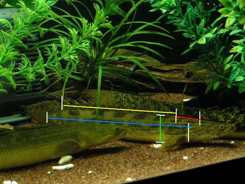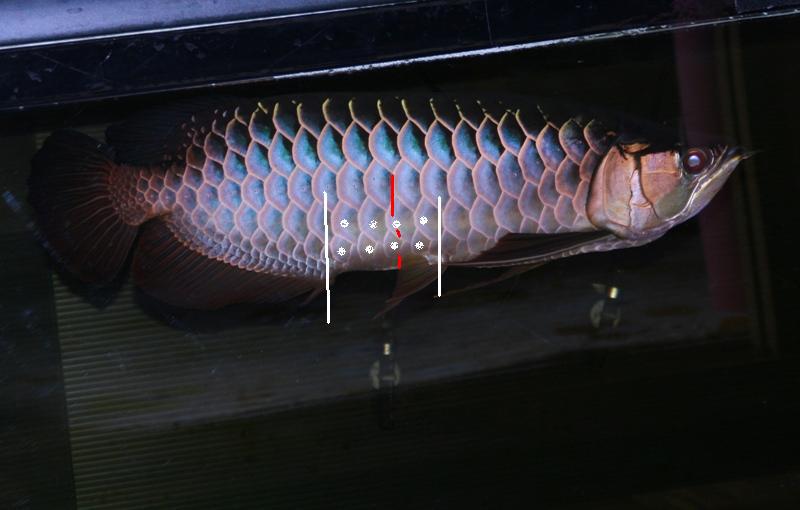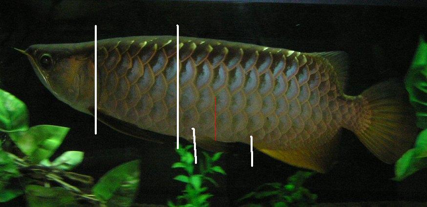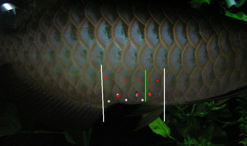 ポリプテルスでは赤、青、緑の部位のガノイン数、黄色は背鰭条数を数えて数値により種を区別してますが、アジアアロワナの場合、体色で区別できる為か?体側鱗列の数を数えるような事は行われないですね。