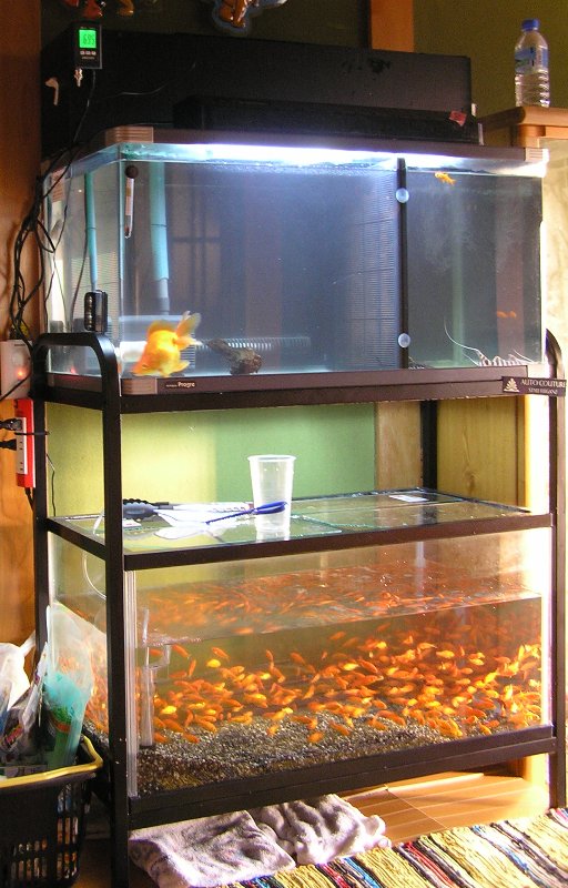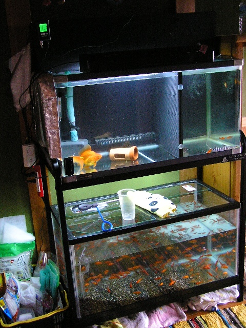 900金魚マンションの上段はフルドライで立ち上げたのですが、まだ立ち上がっておらず活性炭のよる吸着濾過と水換えで耐え忍んでおります(笑)