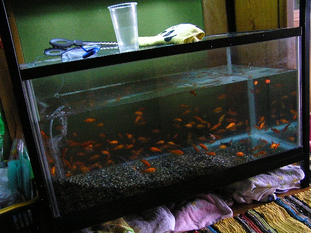 2400のゼブラ2匹が小赤しか喰わないので、小赤を入れないわけにはいかない。