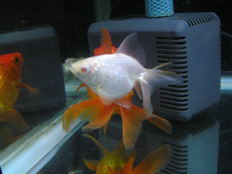 900金魚マンション金魚枠のプラチナ体色のアルビノ流金も元気いっぱい♪