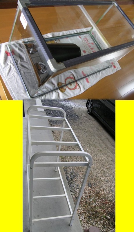 結果、川口店では前面Rの900水槽(3500円)と9002段置きラック(1500円)を購入。