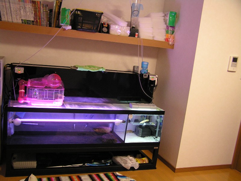 今回の立ち上げに際して小赤等を入れ数日間水を回してバクテリアを沸かすという面倒な事はせずに水を入れ一日回して生体を移動しました。