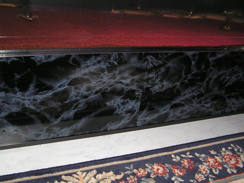 大理石のパネルはラックの高さの30㌢で製作したんですが、実際貼り付けてみると水槽底面が強調されて見た目イマイチ!!